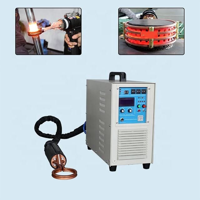 This industrial induction heating machine is designed for versatile thermal processing applications including heating, heat treatment, welding, and annealing operations. The handheld unit provides precise temperature control for various metalworking processes.